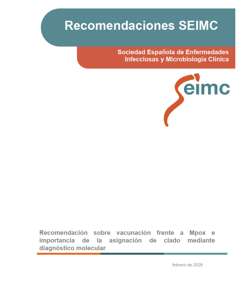 - La Sociedad Española de Enfermedades Infecciosas y Microbiología Clínica (SEIMC) ha actualizado sus recomendaciones ante la situación epidemiológica actual de Mpox en España, marcada por la persistencia de casos, la introducción y aumento del clado Ib y la aparición de formas recombinantes. Un porcentaje relevante de nuevas infecciones carece de asignación de clado y la mayoría de los casos recientes se producen en personas no vacunadas, lo que refuerza la necesidad de intensificar las medidas de prevención.
